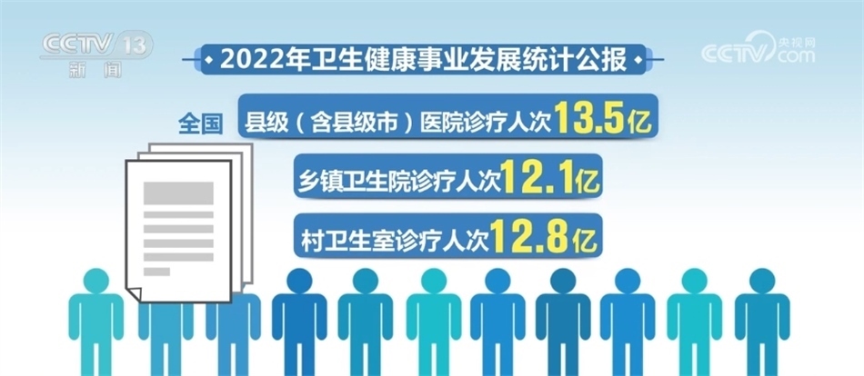 到2022年末,全國共有縣級(含縣級市)醫(yī)院17555所,鄉(xiāng)鎮(zhèn)衛(wèi)生院3.4萬個(gè),村衛(wèi)生室58.8萬個(gè),全國縣級(含縣級市)醫(yī)院診療人次13.5億,鄉(xiāng)鎮(zhèn)衛(wèi)生院診療人次12.1億,村衛(wèi)生室診療人次12.8億。設(shè)立社區(qū)衛(wèi)生服務(wù)中心(站)36448個(gè),全國社區(qū)衛(wèi)生服務(wù)中心診療人次6.9億,社區(qū)衛(wèi)生服務(wù)站診療人次1.4億。