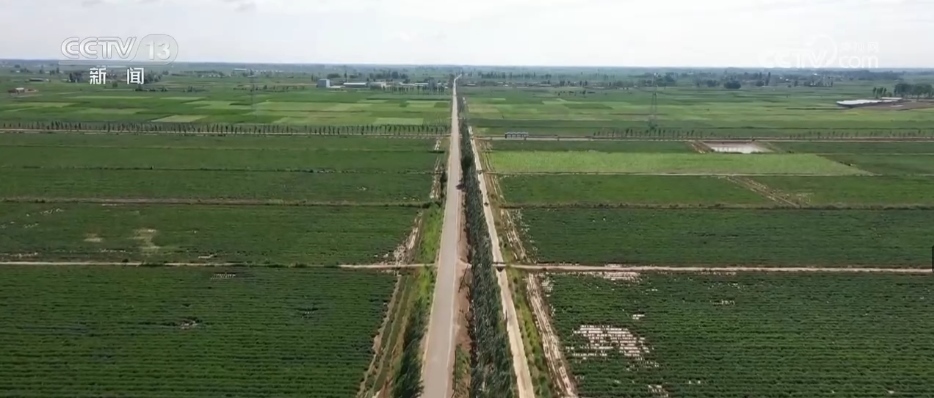 2017年,巴彥淖爾市規(guī)劃了484萬畝鹽堿化耕地“改鹽增草(飼)興牧”示范工程,拉開了全市改良鹽堿地的序幕。通過大規(guī)模土地整理,愛國村零散的土地被整合了起來?,F(xiàn)在行走在愛國村的田間地頭,遠(yuǎn)看路相連、渠相通、溝配套。近看有新的發(fā)現(xiàn),在地下40公分的位置,鋪設(shè)了一層秸稈,鹽隨水來、隨水去。在水分向上蒸發(fā)的同時(shí),能保證鹽分被阻攔在秸稈下面,這個(gè)被稱為“上膜下秸”技術(shù)。而對于重度鹽堿地,當(dāng)?shù)卦诘叵?.8米的位置,每隔50公分鋪設(shè)了一些排水管道,能保證地下的水分隨時(shí)通過這些管道流到排水井里,最大程度地讓作物不受傷害,耕地質(zhì)量提高1—2個(gè)等級。