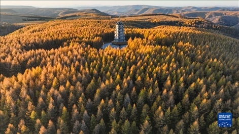 河北承德,塞罕壩國家森林公園秋景。