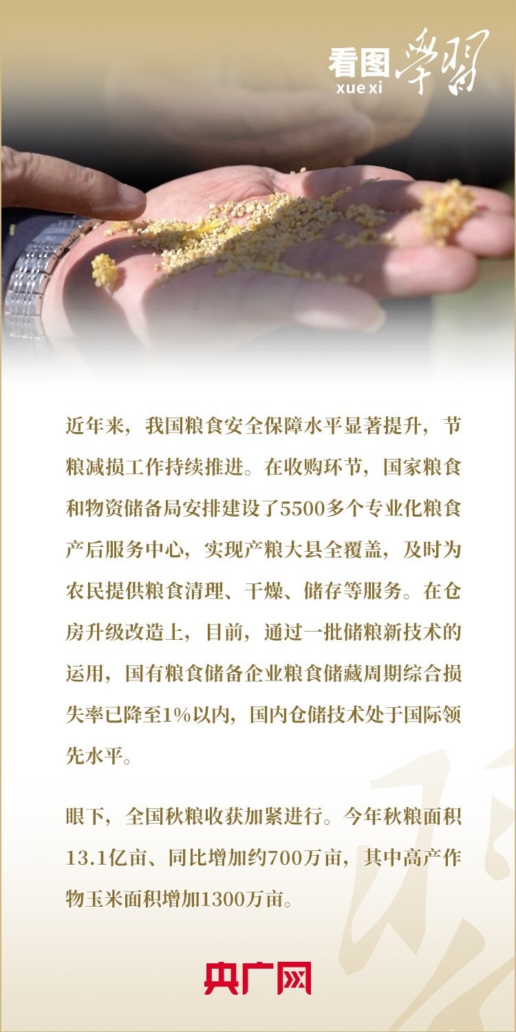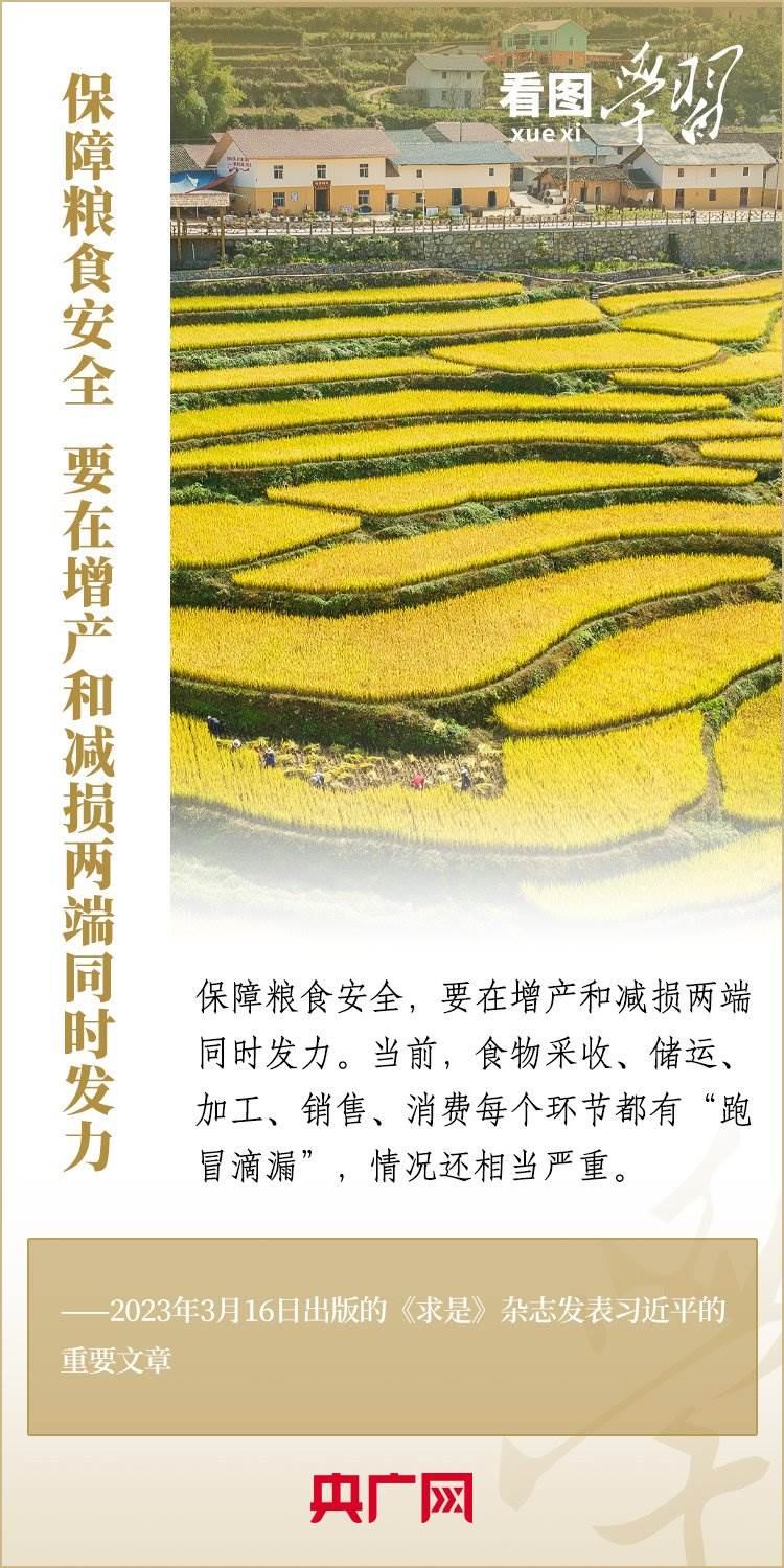 糧食安全是“國之大者”。黨的十八大以來,習(xí)近平總書記在地方考察調(diào)研期間,常常走進(jìn)田間地頭,看長勢、問收成,多次強(qiáng)調(diào)“中國人的飯碗任何時(shí)候都要牢牢端在自己手中”,“保障糧食安全,要在增產(chǎn)和減損兩端同時(shí)發(fā)力”。讓14億多人吃飽吃好,總書記始終念茲在茲。今天是世界糧食日,一起來學(xué)習(xí)!