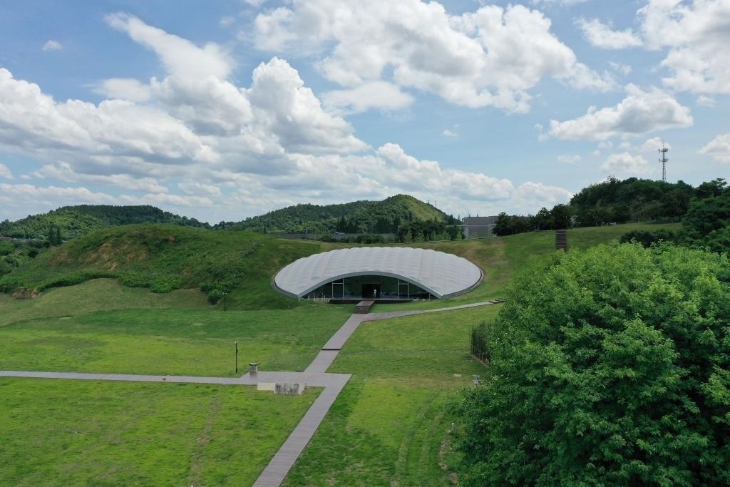 2022年7月6日拍攝的良渚古城遺址老虎嶺遺址公園(無(wú)人機(jī)照片)。新華社記者 黃宗治 攝