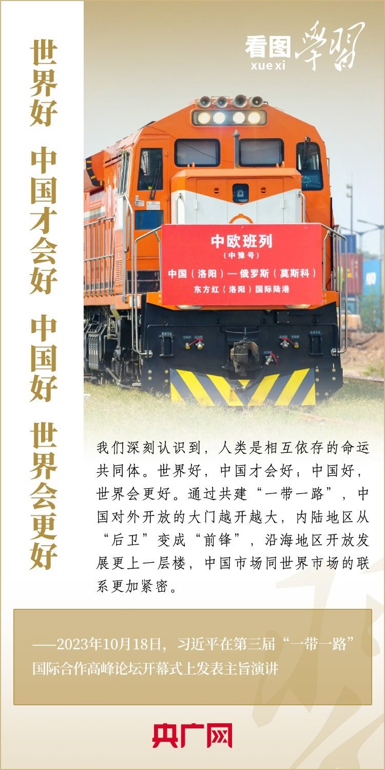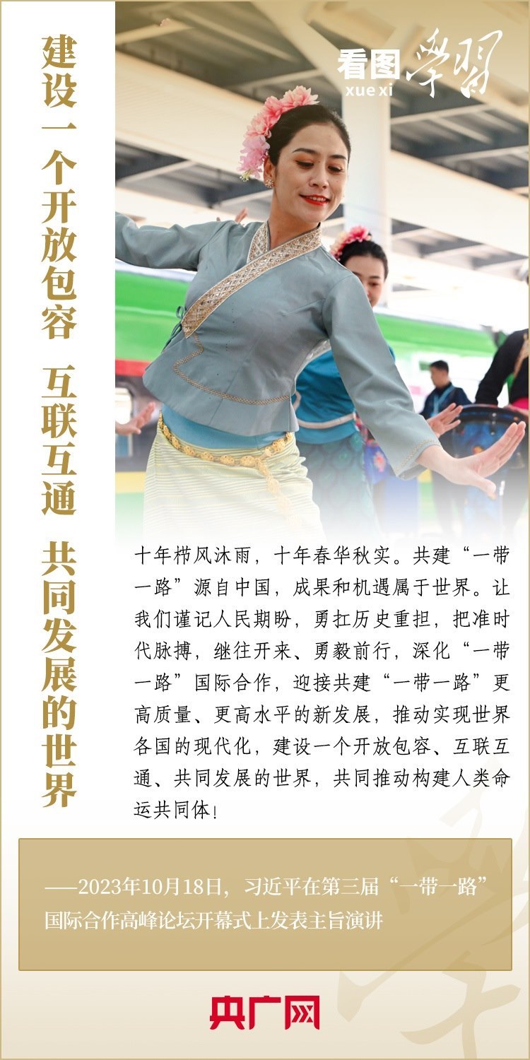 10月18日,習(xí)近平主席出席第三屆“一帶一路”國(guó)際合作高峰論壇開幕式并發(fā)表主旨演講,深刻總結(jié)共建“一帶一路”倡議提出十年來(lái)取得的發(fā)展成果和經(jīng)驗(yàn),就中國(guó)支持高質(zhì)量共建“一帶一路”提出具體行動(dòng),強(qiáng)調(diào)要迎接共建“一帶一路”更高質(zhì)量、更高水平的新發(fā)展,推動(dòng)實(shí)現(xiàn)世界各國(guó)的現(xiàn)代化,建設(shè)一個(gè)開放包容、互聯(lián)互通、共同發(fā)展的世界,共同推動(dòng)構(gòu)建人類命運(yùn)共同體!一起來(lái)學(xué)習(xí)!