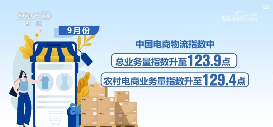 數(shù)據(jù)顯示,今年前三季度,線上電商物流保持旺盛活力,特別是進(jìn)入9月份,農(nóng)村以及全領(lǐng)域電商物流需求穩(wěn)步回升。9月份,中國電商物流指數(shù)中的總業(yè)務(wù)量指數(shù)、農(nóng)村電商業(yè)務(wù)量指數(shù)分別升至123.9點、129.4點的年內(nèi)較高水平。
