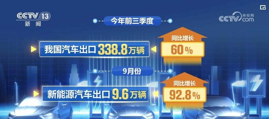 今年前三季度,我國汽車出口338.8萬輛,同比增長60%。這其中,新能源汽車的出口增幅十分強(qiáng)勁。其中9月份,新能源汽車出口9.6萬輛,同比增長92.8%。在不少國家,中國的新能源汽車已經(jīng)成為當(dāng)?shù)匦履茉雌囦N量的總冠軍。分析背后的原因,“固本興新”是關(guān)鍵詞,新能源汽車正為中國外貿(mào)注入新的動能。據(jù)中國汽車工業(yè)協(xié)會的預(yù)計(jì),2023年汽車出口將超過400萬輛,其中新能源汽車將超過100萬輛。