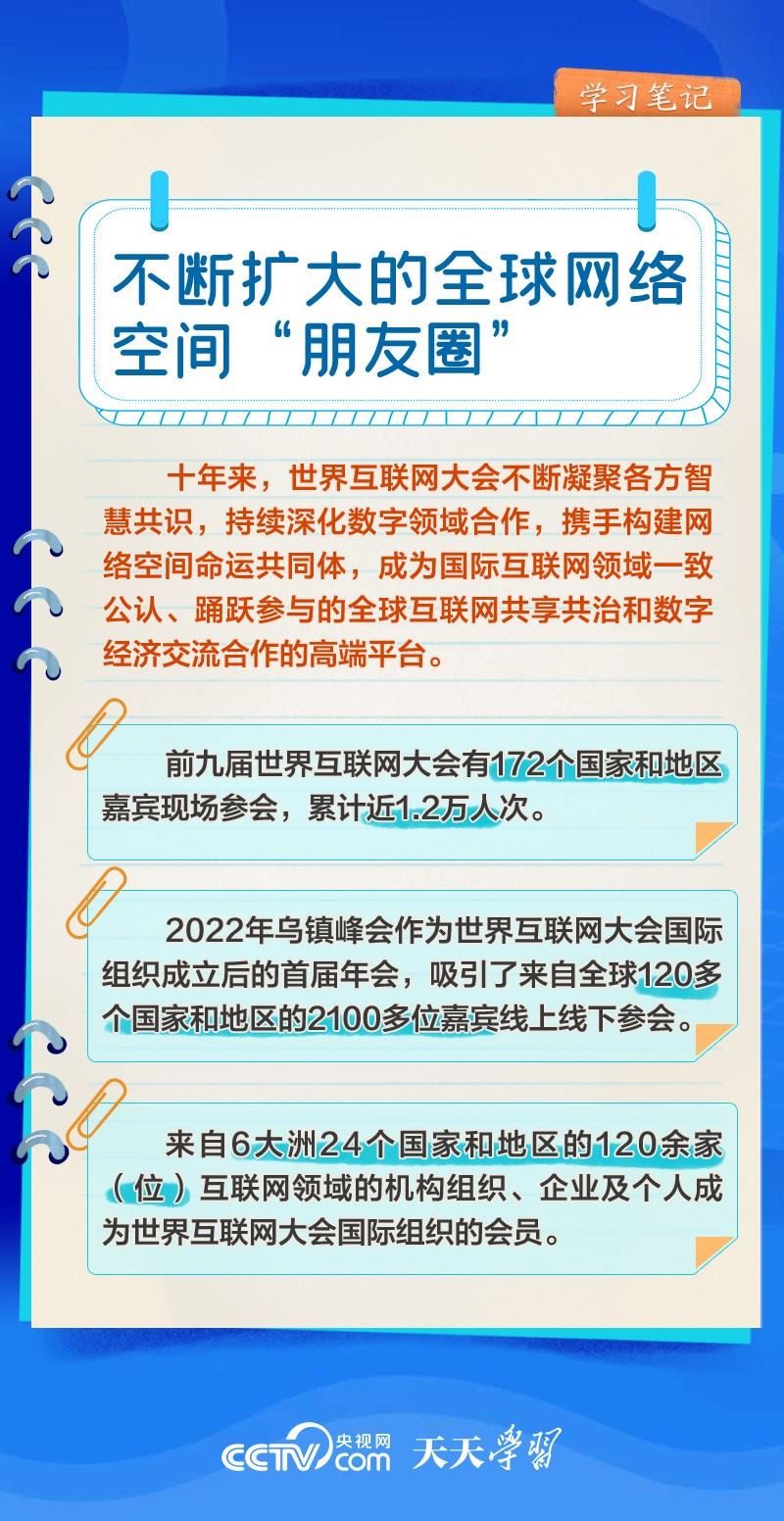 前九屆世界互聯(lián)網(wǎng)大會(huì),習(xí)近平主席或親臨現(xiàn)場(chǎng)發(fā)表主旨演講,或視頻致辭,或向大會(huì)發(fā)來(lái)賀信,以不同形式關(guān)心大會(huì)舉辦。央視網(wǎng)《天天學(xué)習(xí)》欄目推出學(xué)習(xí)筆記,與您一起了解世界互聯(lián)網(wǎng)大會(huì)的十年“網(wǎng)”事。