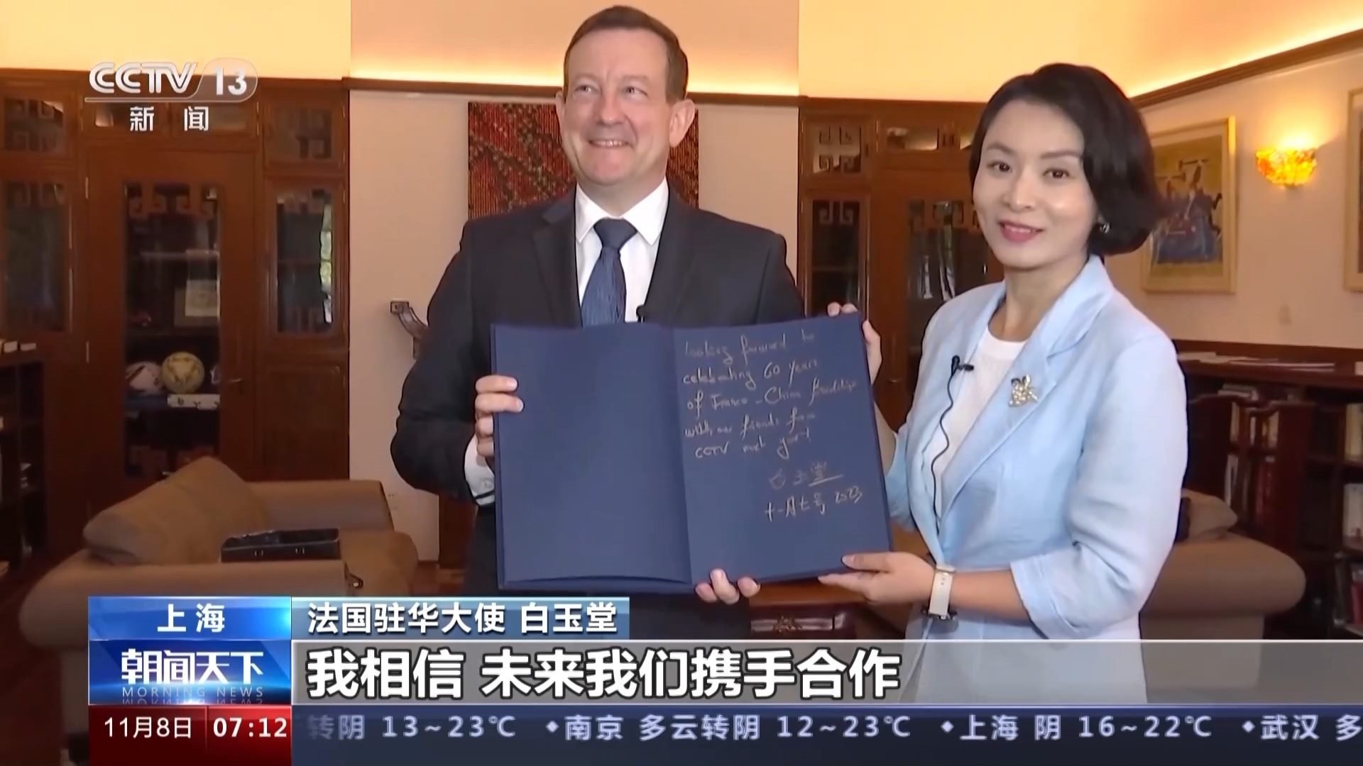 法國(guó)駐華大使 白玉堂:今年馬克龍總統(tǒng)訪華,我認(rèn)為兩國(guó)領(lǐng)導(dǎo)人傳達(dá)的關(guān)鍵信息之一,就是我們兩國(guó)比以往任何時(shí)候都更需要加深合作和相互理解。事實(shí)上,自從這次馬克龍總統(tǒng)訪華以來(lái),我們已經(jīng)做了很多的工作,以各種可能的方式提高法國(guó)在中國(guó)的曝光度,比如說(shuō)經(jīng)濟(jì)和貿(mào)易領(lǐng)域,因此也有了法國(guó)企業(yè)在今年進(jìn)博會(huì)的大規(guī)模亮相,我們希望中國(guó)人民和法國(guó)人民建立強(qiáng)有力的聯(lián)系。我認(rèn)為現(xiàn)在我們兩國(guó)人民需要更多的交流,我們渴望并十分愿意越來(lái)越多的中國(guó)朋友到訪法國(guó)。當(dāng)然也期待越來(lái)越多的法國(guó)人,不管是商人、游客,還是學(xué)生都來(lái)到中國(guó)。我們將竭盡所能支持和促進(jìn)所有的這些交流活動(dòng)。我相信,未來(lái)我們攜手合作,能夠取得比過(guò)去更為豐碩的成果。(總臺(tái)央視記者 李晶晶 王晨 趙迎晨 黃一宸)