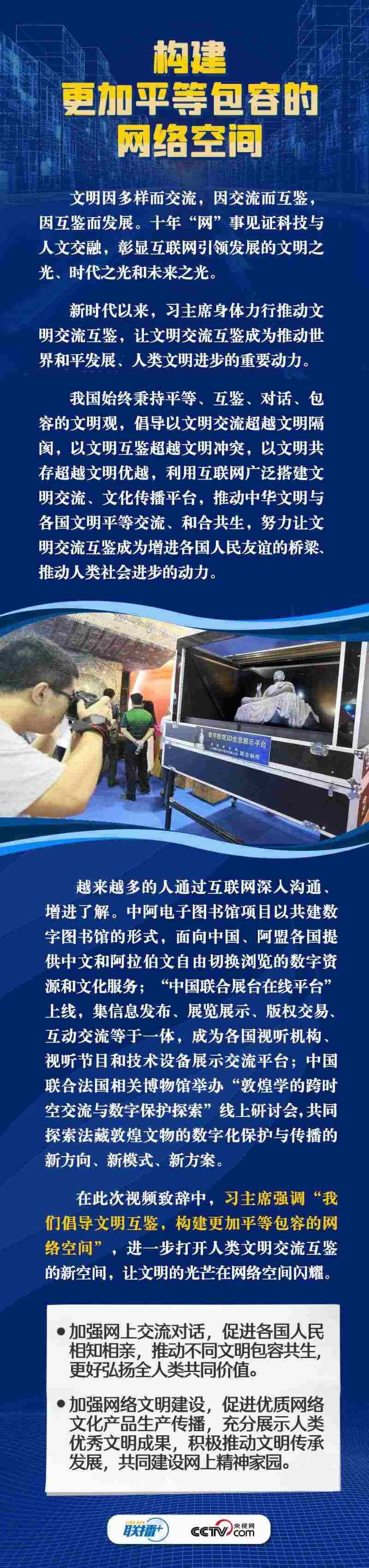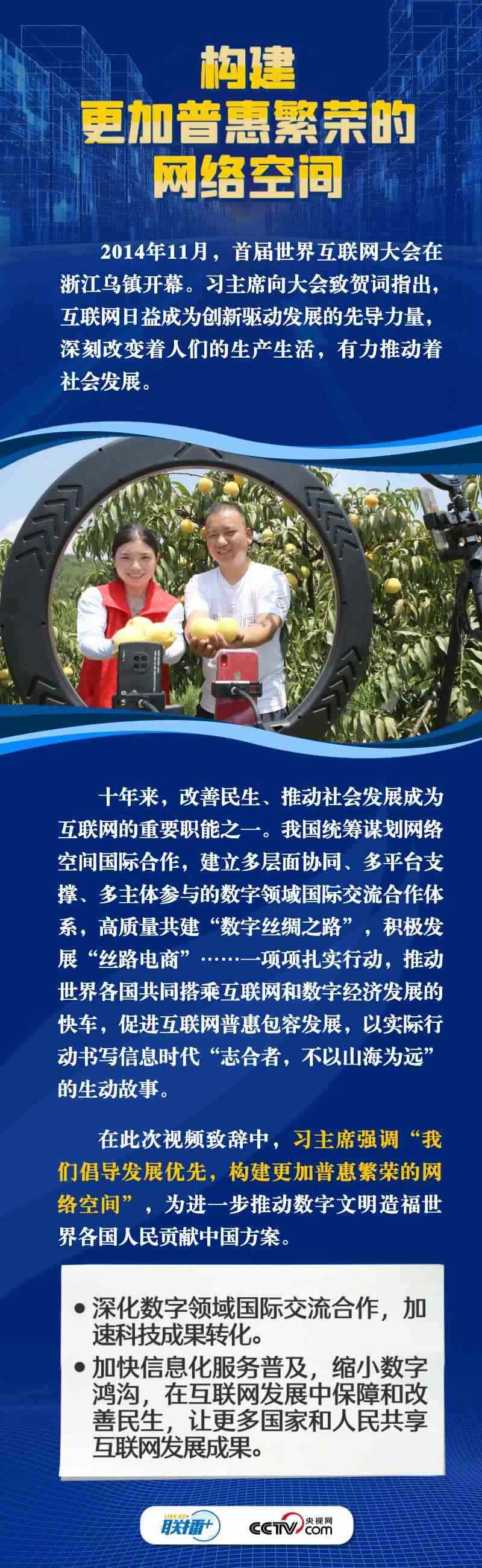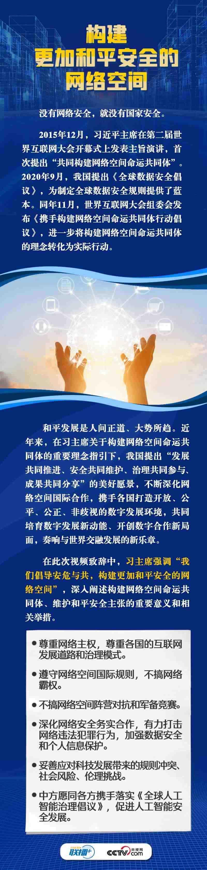 面對新的時代課題,習主席在此次視頻致辭中倡導構(gòu)建更加普惠繁榮、更加和平安全、更加平等包容的網(wǎng)絡空間。這三個“網(wǎng)絡空間”具體內(nèi)容是什么?構(gòu)建網(wǎng)絡“新空間”有什么具體措施?央視網(wǎng)《聯(lián)播+》與您一同學習。