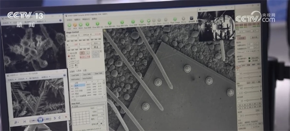中國科學(xué)院參展單位負(fù)責(zé)人 王高峰:在材料研究以及表面表征方面能發(fā)現(xiàn)更小的缺陷,我們現(xiàn)在看到的是一個半導(dǎo)體芯片的微觀形貌。通過這個儀器,我們可以看到它的一些表面缺陷,這也是半導(dǎo)體生產(chǎn)工藝過程中非常重要的一個檢測手段。