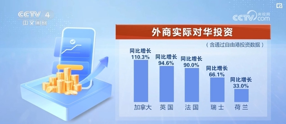 盡管部分指標(biāo)出現(xiàn)波動(dòng),但外商來華投資熱度不減。加拿大、英國、法國、瑞士、荷蘭實(shí)際對(duì)華投資同比分別增長110.3%、94.6%、90%、66.1%、33%。