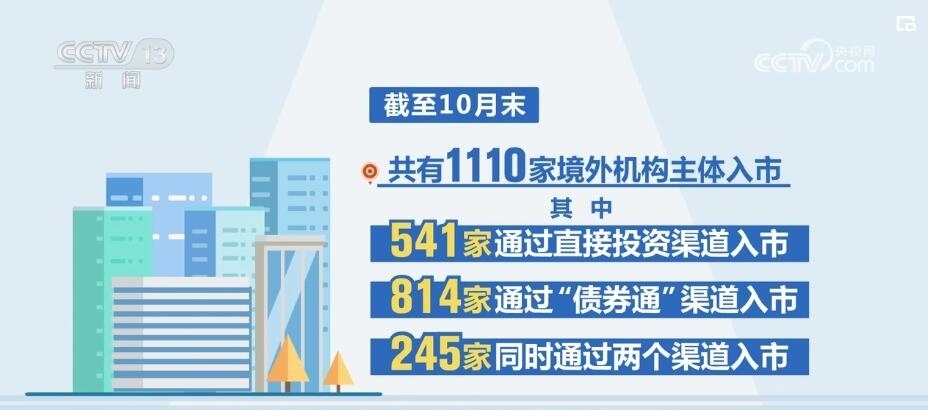 在資金凈流入的同時,銀行間債券市場的境外機構(gòu)參與數(shù)量也在不斷增加,截至10月末,共有1110家境外機構(gòu)主體入市,其中541家通過直接投資渠道入市,814家通過“債券通”渠道入市,245家同時通過兩個渠道入市。