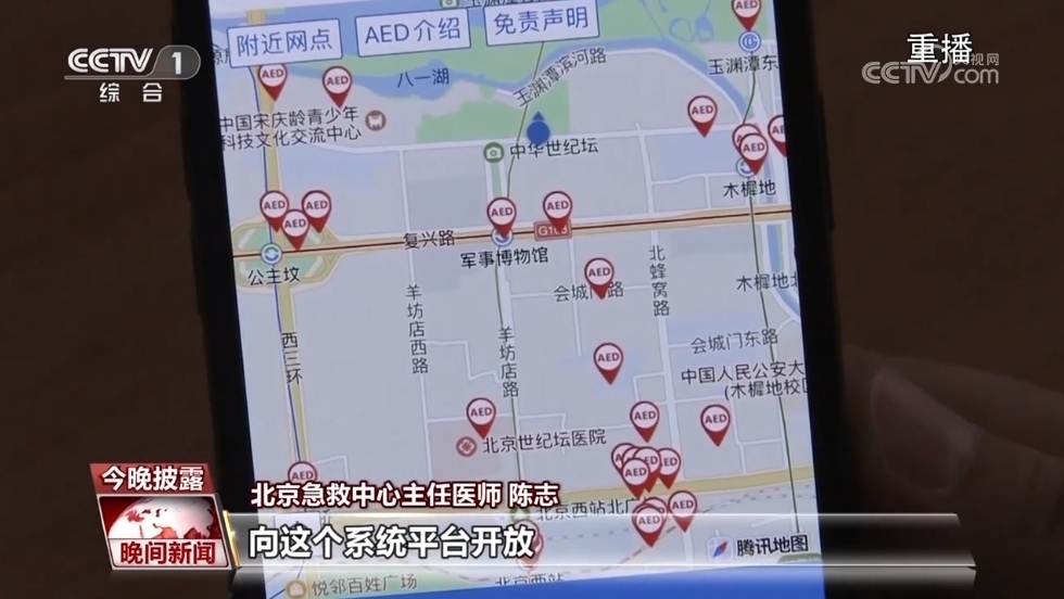 北京市衛(wèi)生健康委員會應急辦副主任 于海玲:調(diào)度指揮系統(tǒng)里就能夠隨時看到AED的位置和一些基本的信息。120調(diào)度員在派車的同時會給呼叫者一些指引,然后協(xié)助他找到就近的AED開始施救,為我們專業(yè)的院前急救工作開展奠定一個前期的基礎。
