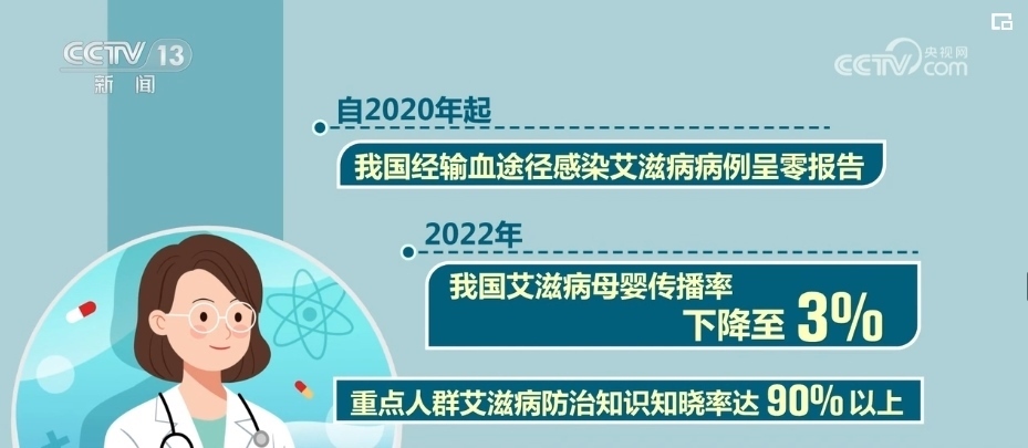 自2020年起,我國經(jīng)輸血途徑感染艾滋病病例呈零報(bào)告。2022年,我國艾滋病母嬰傳播率下降至3%,重點(diǎn)人群艾滋病防治知識(shí)知曉率達(dá)90%以上。