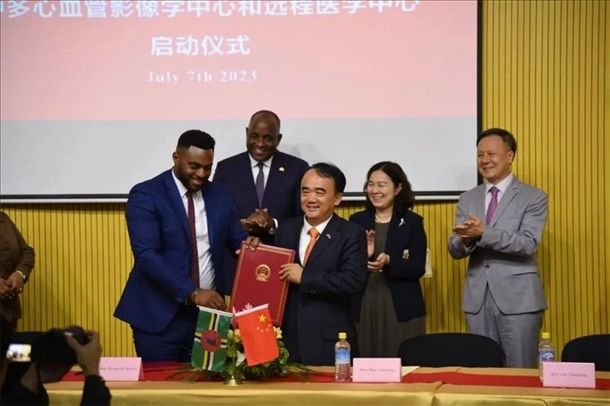 吳德熙半年可見的朋友圈里,唯一一條動(dòng)態(tài)發(fā)自多米尼克。那是2023年7月7日,中國-多米尼克心血管影像學(xué)中心和遠(yuǎn)程醫(yī)學(xué)中心成立的日子。為了這個(gè)了不起的時(shí)刻,時(shí)隔大半年,他再次跨過半個(gè)地球,登上這座小島。