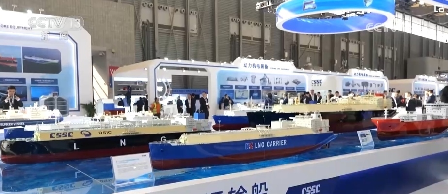 總臺央視記者 吳天白:在展館內(nèi)可以看到不同種類的世界先進船型和發(fā)動機等船用配套設施設備。本屆展會參展商有42%是境外企業(yè),不僅是國際船舶海工產(chǎn)業(yè)技術(shù)發(fā)展趨勢的“風向標”,更為中國與國際客戶間的合作搭建了“橋梁”。