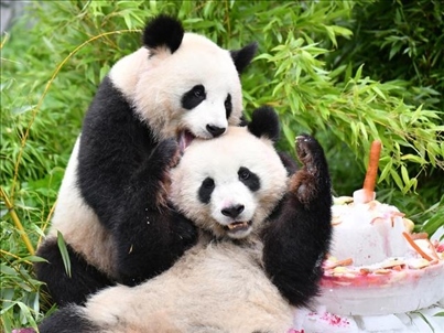 ·柏林動(dòng)物園為即將回國(guó)的大熊貓雙胞胎“夢(mèng)想”和“夢(mèng)圓”舉辦歡送活動(dòng)。