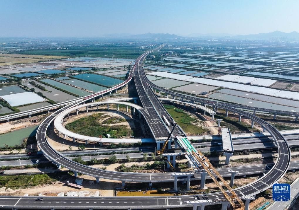 這是廣東鶴港高速高欄港樞紐(2023年12月8日攝,無人機(jī)照片)。新華社記者 劉大偉 攝