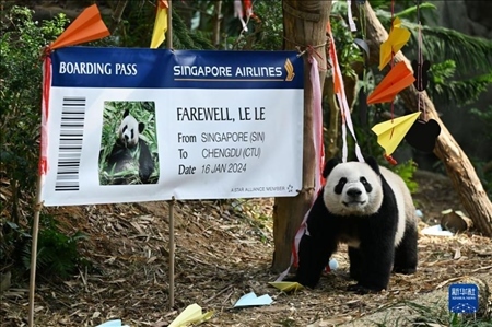 12月13日,新加坡河川生態(tài)園為首只在新加坡出生的大熊貓“叻叻”舉行歡送會?!斑愤贰睂⒂?024年1月16日啟程返回中國。