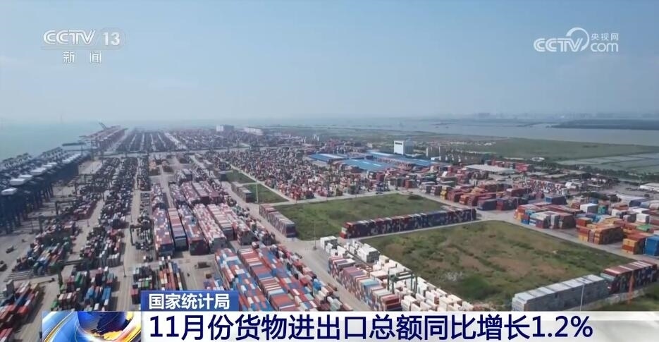 貨物進出口同比增長,貿(mào)易結構繼續(xù)優(yōu)化,11月份,貨物進出口總額同比增長1.2%,比上月加快0.3個百分點。