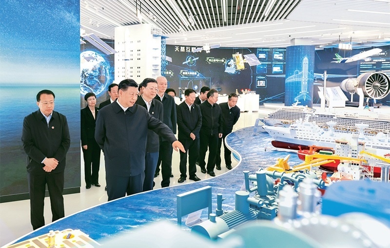 2023年11月28日至12月2日,中共中央總書記、國家主席、中央軍委主席習近平在上??疾臁_@是11月28日下午,習近平在浦東新區(qū)張江科學城參觀上??萍紕?chuàng)新成果展。 新華社記者 王曄/攝