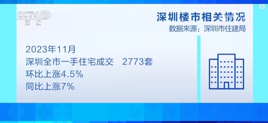 深圳市住建局數(shù)據(jù)顯示,11月份,深圳全市一手住宅成交2773套,環(huán)比漲4.5%、同比漲7%。