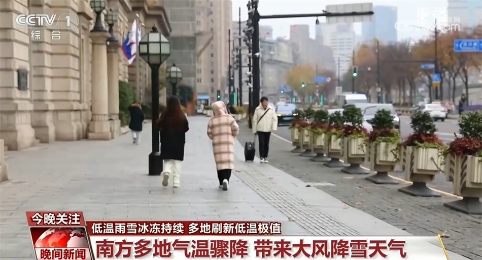 浙江、上海等地也出現(xiàn)今冬初雪。這兩天上海氣溫一路下跌,14日最高氣溫達(dá)21℃,16日,上海中心城區(qū)最高氣溫僅有2℃。預(yù)計(jì)低溫天氣還將持續(xù)。