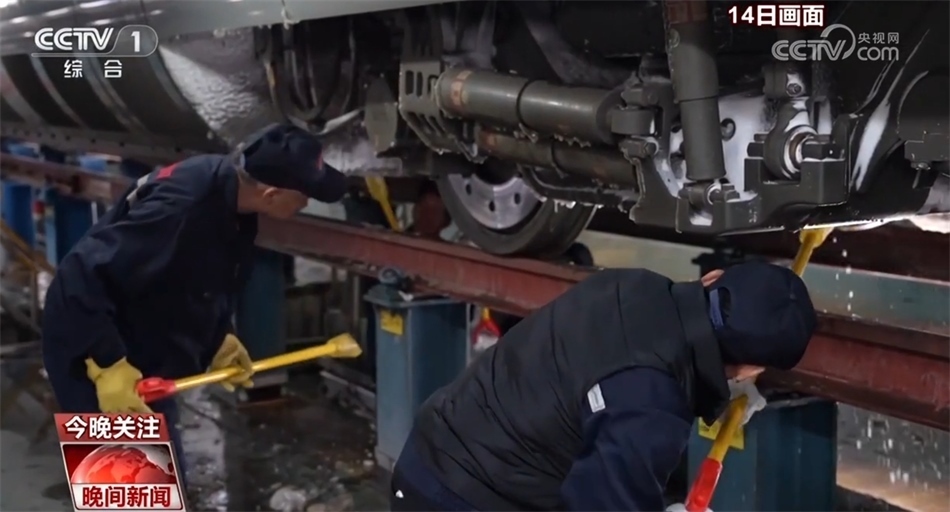 先除冰,再檢測,列車檢修員們化身雪夜除冰人,一列車下來最快要半個(gè)小時(shí),如果趕上冰層厚的列車則需要三個(gè)小時(shí)。