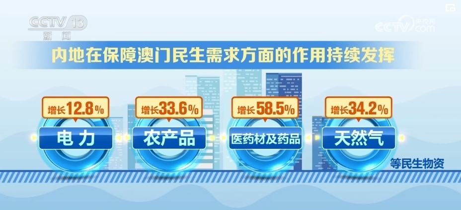 內(nèi)地對澳門出口商品結構更加多元。2023年以來,內(nèi)地經(jīng)拱北海關對澳門地區(qū)出口機電產(chǎn)品74億元,占同期總值的37.4%,而1999年的比重不足10%。此外,電力、農(nóng)產(chǎn)品、醫(yī)藥材及藥品、天然氣等民生物資分別增長12.8%、33.6%、58.5%、34.2%,內(nèi)地在保障澳門民生需求方面的作用持續(xù)發(fā)揮。
