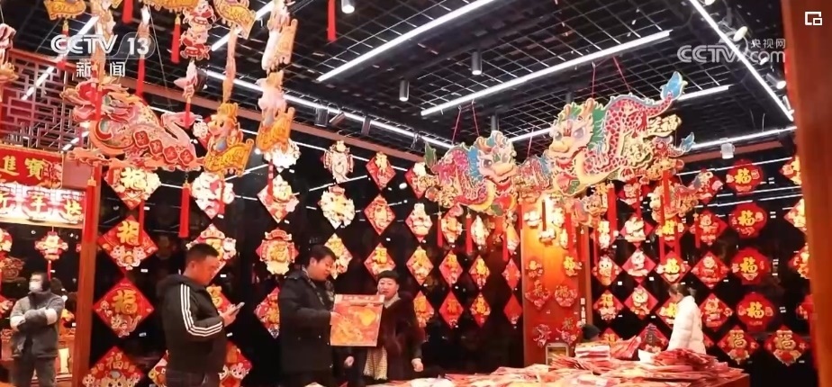 在浙江義烏國際商貿(mào)城,來自全國各地的采購商們抓緊選購著年貨。市場里的龍?jiān)禺a(chǎn)品頗受客商們歡迎,對聯(lián)、年畫、福字、紅包等產(chǎn)品,將從浙江義烏發(fā)往全球各地。