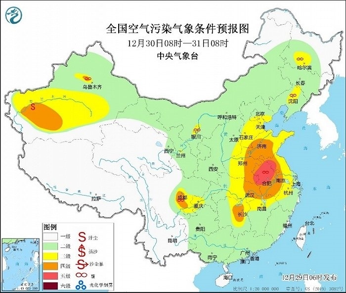 今天至30日白天,將是本次霧和霾天氣過程影響最重的時(shí)段,預(yù)計(jì)華北中南部、黃淮中西部、汾渭平原、江漢、四川盆地等地將有輕至中度霾,其中,天津、河北中南部、山東西部、河南北部等地有重度霾。29日夜間至30日的早晨至上午時(shí)段,華北中南部、黃淮、江淮等地的部分地區(qū)仍有大霧天氣,今天18時(shí)將繼續(xù)發(fā)布大霧預(yù)警。