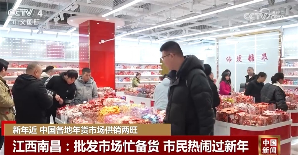 在江西南昌的這個批發(fā)市場,琳瑯滿目的商品擺滿貨架,糖果、干貨也到了銷量最好的時候。一大早,這里就迎來了前來購物的市民。