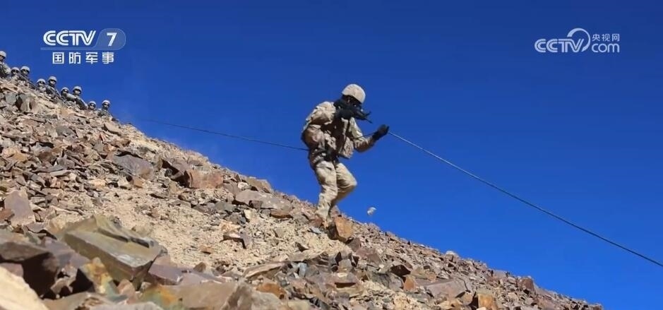 新疆軍區(qū)某團(tuán) 黃文津:在下滑過程中制動(dòng)手一定要將繩子抓住,同時(shí)也要注意后方落石及腳下石頭,以免發(fā)生摔傷,是否清楚?