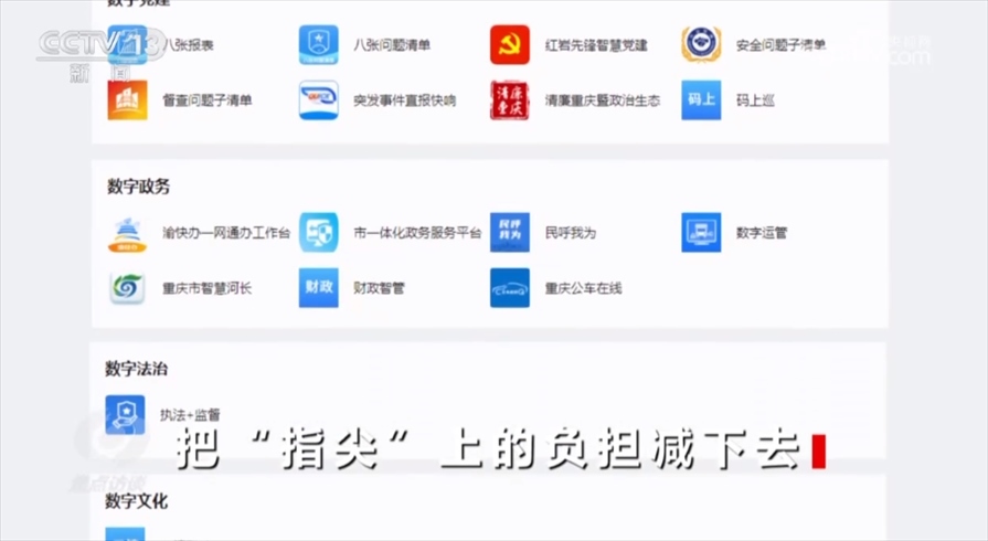 工作重心向基層服務(wù)轉(zhuǎn)變,才能切實(shí)看到為基層減負(fù)的實(shí)效。2021年,重慶市一體化、智能化、數(shù)字化政務(wù)工作平臺(tái)“渝快政”正式發(fā)布?!坝蹇煺痹谌蟹秶鷥?nèi)實(shí)現(xiàn)了上下層級(jí)、橫向跨部門之間的協(xié)同,一個(gè)“渝快政”App就可以支持過去40多項(xiàng)高頻次的政務(wù)辦公應(yīng)用,過去各部門App的相應(yīng)功能、各種工作群都整合在了“渝快政”一個(gè)App里面。一表通、“141”基層智治平臺(tái)也已經(jīng)接入了“渝快政”,正在向全市推廣?,F(xiàn)在,文勇手機(jī)里的53個(gè)工作群已經(jīng)解散,郝歡手機(jī)里十幾個(gè)部門App也已經(jīng)被整合到“渝快政”。?