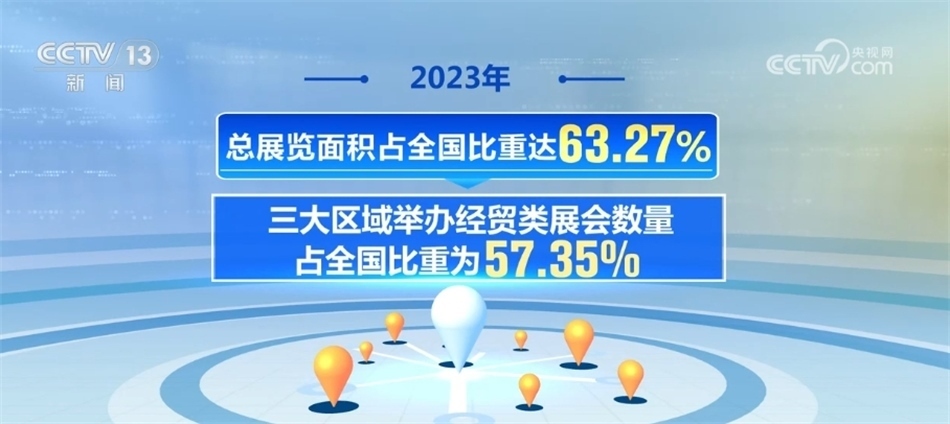 鄔勝榮介紹,京津冀、長三角、珠三角仍是熱門展覽區(qū)域,2023年三大區(qū)域舉辦經(jīng)貿(mào)類展會數(shù)量占全國比重為57.35%,總展覽面積占全國比重達63.27%;其中,長三角地區(qū)2023年共舉辦經(jīng)貿(mào)類展會1031場,總展覽面積4398萬平方米,在全國占比分別為26.28%和31.14%。從行業(yè)分布來看,工業(yè)與科技類展會在數(shù)量和面積上均居各行業(yè)展覽首位。