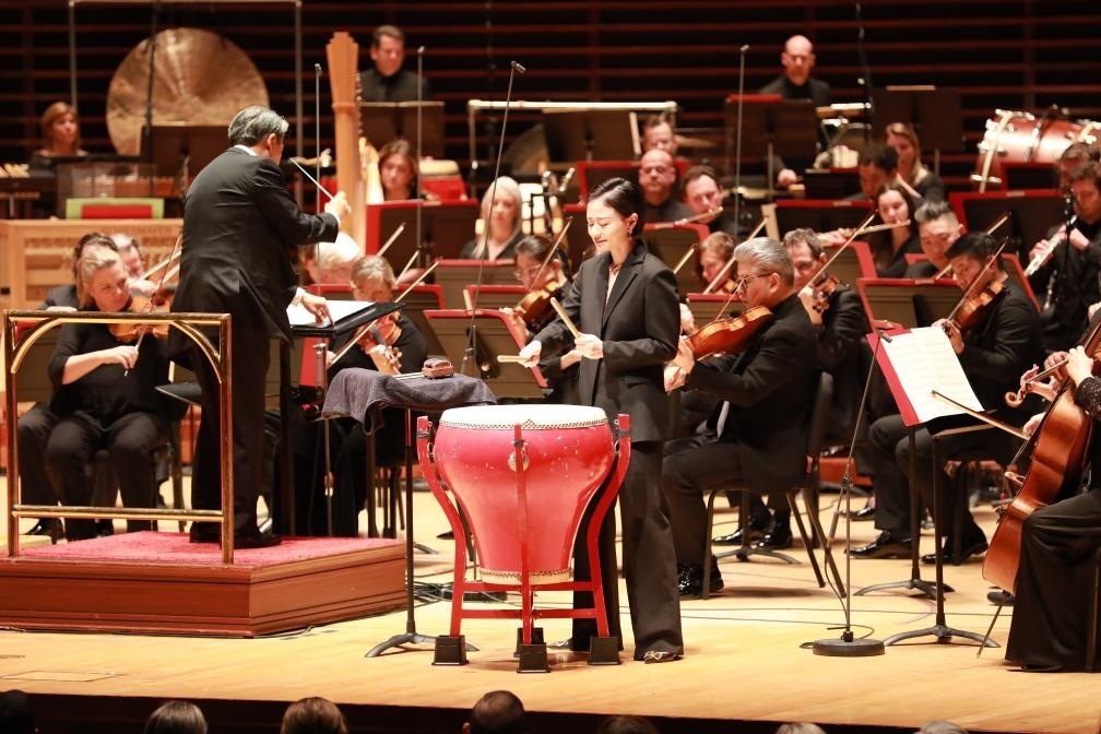 上海交響樂團打擊樂演奏家付藝霏當晚在《夜深沉》中演奏中國大鼓,又在《茉莉花》中演奏西方的定音鼓?!安还苁侵袊墓?,還是西方的鼓,在表演中都可以找到共通點。”她說。
