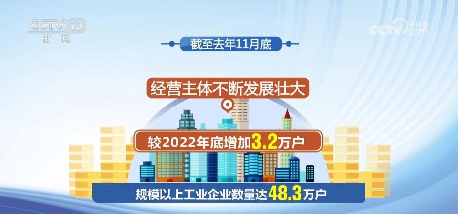 數(shù)據(jù)顯示,截至去年11月底,規(guī)模以上工業(yè)企業(yè)數(shù)量達(dá)48.3萬戶,較2022年底增加3.2萬戶,經(jīng)營主體不斷發(fā)展壯大。制造業(yè)PMI生產(chǎn)經(jīng)營活動預(yù)期指數(shù)自2023年10月連續(xù)3個月上升,全年指數(shù)均高于臨界點(diǎn),制造業(yè)企業(yè)對發(fā)展信心穩(wěn)定恢復(fù)。