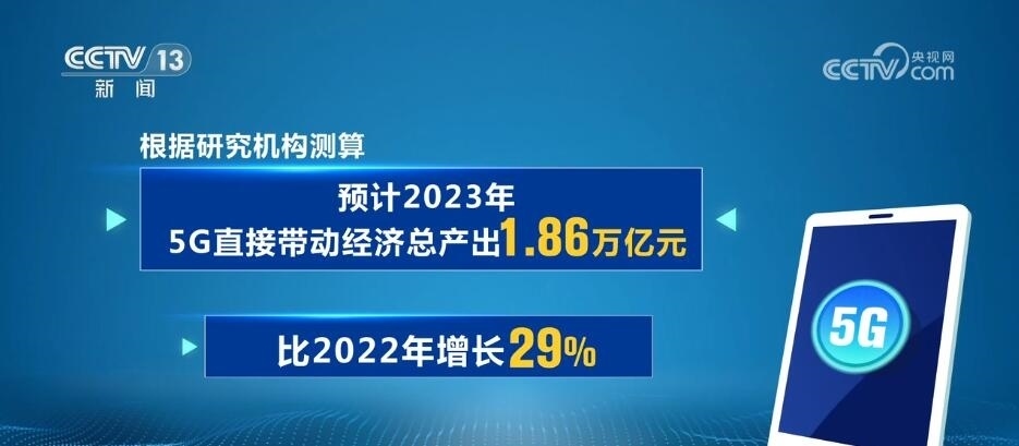 截至2023年底,我國5G移動電話用戶達(dá)8.05億戶。根據(jù)研究機(jī)構(gòu)測算,預(yù)計(jì)2023年,5G直接帶動經(jīng)濟(jì)總產(chǎn)出1.86萬億元,比2022年增長29%。