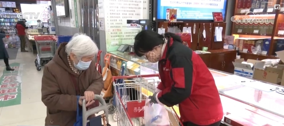 早上8時(shí),社區(qū)附近的東單菜市場開門營業(yè)。87歲的曹奶奶今天用積分換了很多東西,菜市場的工作人員提出免費(fèi)幫她送到家里。