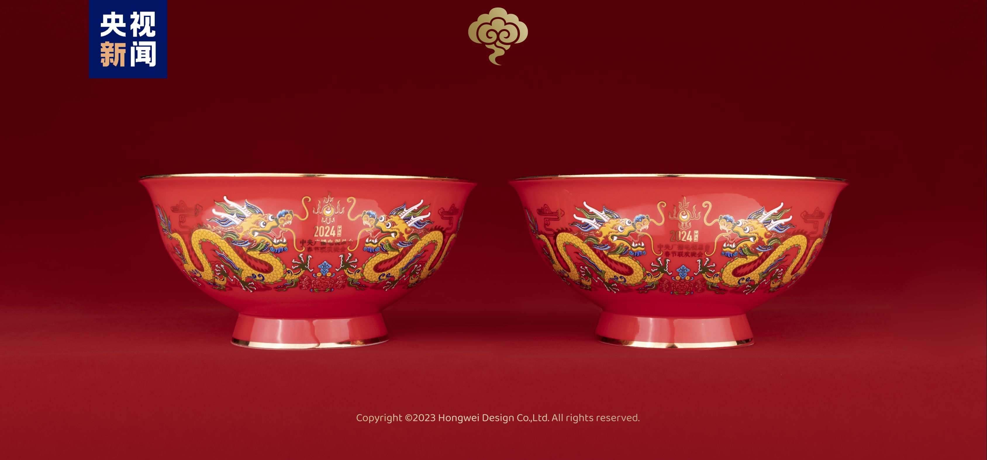 總臺(tái)文創(chuàng)的龍碗主畫面取自中國民間吉祥裝飾圖案“雙龍戲珠”,采用對(duì)稱型構(gòu)圖,寓意富貴吉祥,幸福安康。龍碗色彩鮮艷明快,烘托出民間新年的喜慶氛圍。