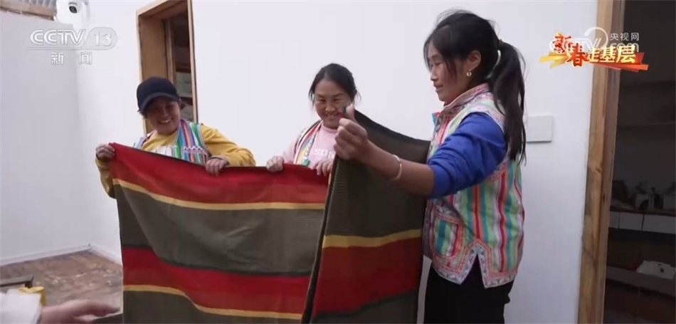 在獨(dú)龍江鄉(xiāng),記者見到了34歲的獨(dú)龍族婦女碧玉花,她和姐妹們春節(jié)前要為客戶趕制一批獨(dú)龍?zhí)?,紗線剛剛運(yùn)來,她們就迫不及待地趕往河對岸的工作室。