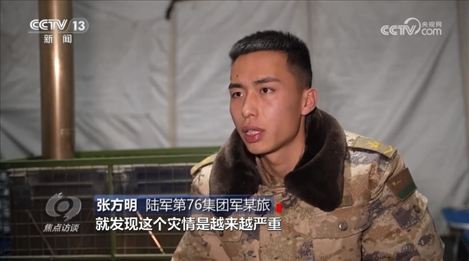 張方明:“一直走到大河家鎮(zhèn),發(fā)現(xiàn)災(zāi)情越來越嚴(yán)重,就打電話說我回來了,我爸第一時(shí)間跟我說:‘你先不要回去了,這邊搬物資啥的,鄉(xiāng)政府都比較忙,你是當(dāng)兵的,你要來這邊幫忙,你要肩負(fù)起這份責(zé)任?!?/p>