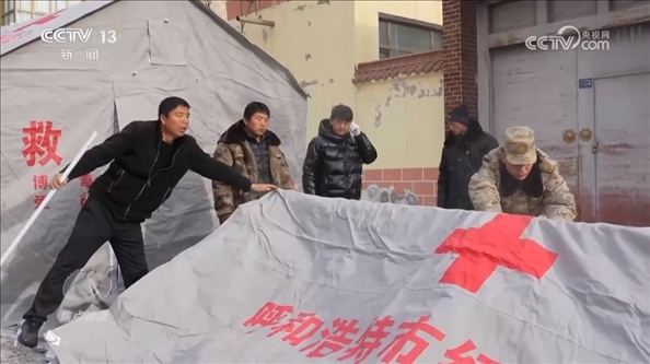 甘肅省臨夏州積石山縣石塬鎮(zhèn)振興社區(qū)副主任孔德義:“他發(fā)揮的作用特別大,因?yàn)樗吘故遣筷?duì)出身,身體素質(zhì)好,搭帳篷這一塊特別強(qiáng)。有他在的話,5分鐘就能完成一個(gè),效率特別高。還有像如何規(guī)避余震帶來的傷害,他先給先鋒隊(duì)講解,我們?cè)僦饌€(gè)分散開給群眾講解,等同于一個(gè)專業(yè)人士帶領(lǐng)著先鋒隊(duì)去幫助更多的群眾,去服務(wù)群眾?!?/p>
