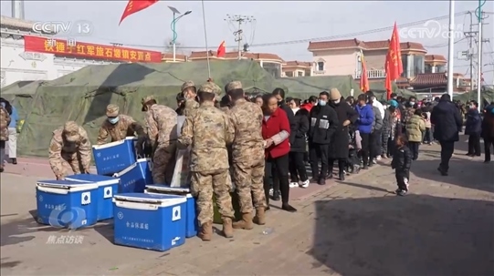 甘肅省臨夏州積石山縣石塬鎮(zhèn)振興社區(qū)黨支部書記張國英:“凌晨的時(shí)候最難熬,特別冷,累了就隨便在車上裝車的時(shí)候瞇一會(huì)兒,一句怨言也沒有。他們倆一個(gè)是黨員,一個(gè)是軍人,在大災(zāi)大難面前,沖鋒陷陣第一個(gè)先上?!?/p>
