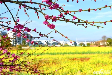 江西省贛州市興國縣埠頭鄉(xiāng),百畝油菜花競相綻放,吸引游客前來賞花游玩。
