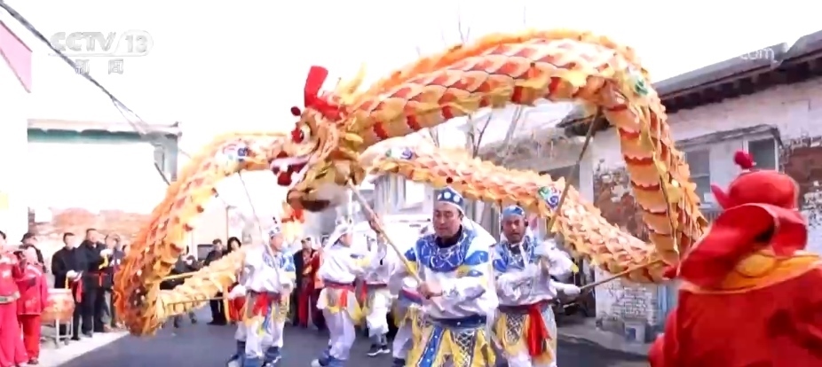 在山西太原東蒲村,街道上鑼鼓聲聲,舞龍表演這幾天也在熱鬧上演。據(jù)了解,這里的舞龍活動歷史悠久,每當民俗節(jié)慶,當?shù)囟紩ㄟ^舞龍來祈福。