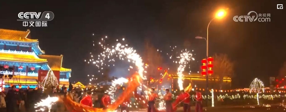 春節(jié)臨近,內(nèi)蒙古烏蘭察布古城新春燈會也正式開燈。栩栩如生的巨型花燈構(gòu)成璀璨燈海,彩燈與古色古香的建筑交相輝映,形成恢弘壯美、流光溢彩的美麗景象?,F(xiàn)場打鐵花、舞火龍、煙花秀等民俗活動輪番上演,令游客流連忘返。