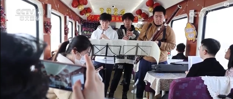 隨著春節(jié)臨近,在外務(wù)工的游子們紛紛踏上了回家的旅途。在青島北開往成都西Z318次列車上,悅耳歡快旋律響起,列車工作人員邀請3位學生旅客,為大家演奏了悠揚歡快的樂曲。