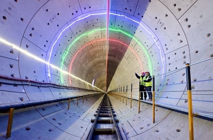 2024年2月3日,工作人員在北京軌道交通22號線河北段盾構(gòu)隧道內(nèi)進(jìn)行巡查。新華社記者 王曉 攝