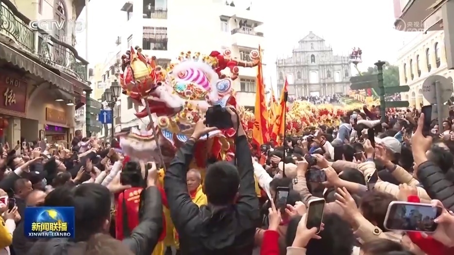 今天,澳門舉辦“歡樂春節(jié)——2024年龍騰舞躍賀新春”社區(qū)巡演活動(dòng),一條長達(dá)238米的金龍和18頭醒獅從大三巴牌坊同時(shí)出發(fā),途經(jīng)澳門多個(gè)主要景點(diǎn),與眾多市民和游客一起慶祝龍年新春佳節(jié)。
