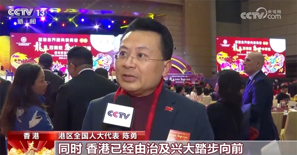 港區(qū)全國人大代表 陳勇:很多香港的朋友到內(nèi)地(或)留在香港共度一個歡慶的龍年,同時,香港已經(jīng)由治及興大踏步向前,同時還助力強國建設(shè)和民族的復(fù)興。