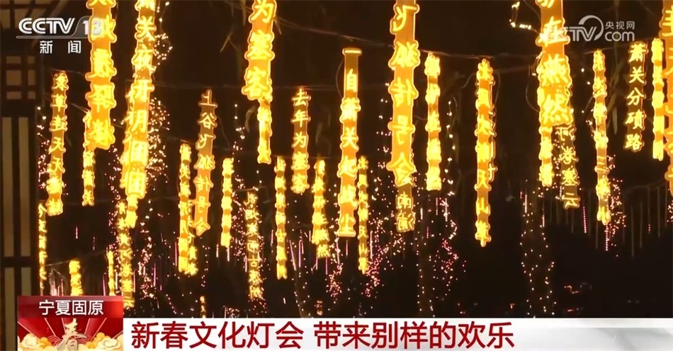 在寧夏固原的“西湖公園”內(nèi),一場以詩詞花燈、主題花燈為主的新春文化燈會給當(dāng)?shù)匕傩諑韯e樣的歡樂。